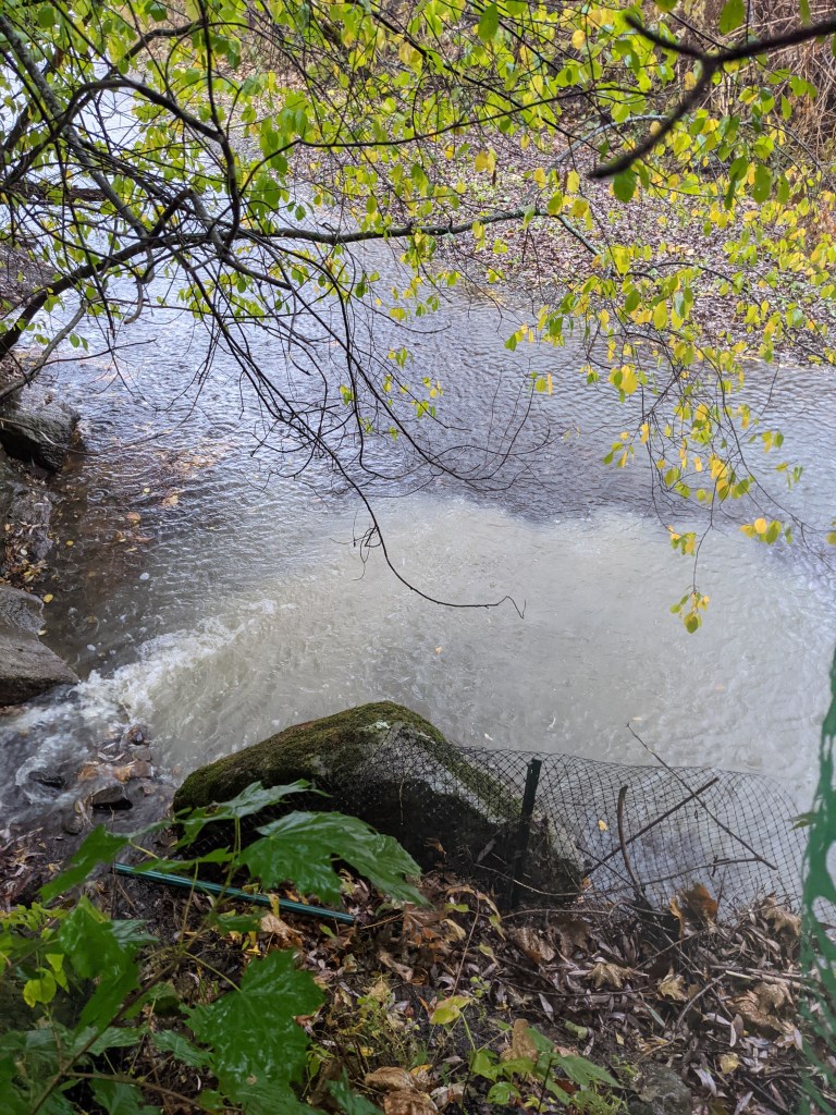 Silty water flowing into Mink Brook at 27 Greensboro, photo taken 10/13/20.