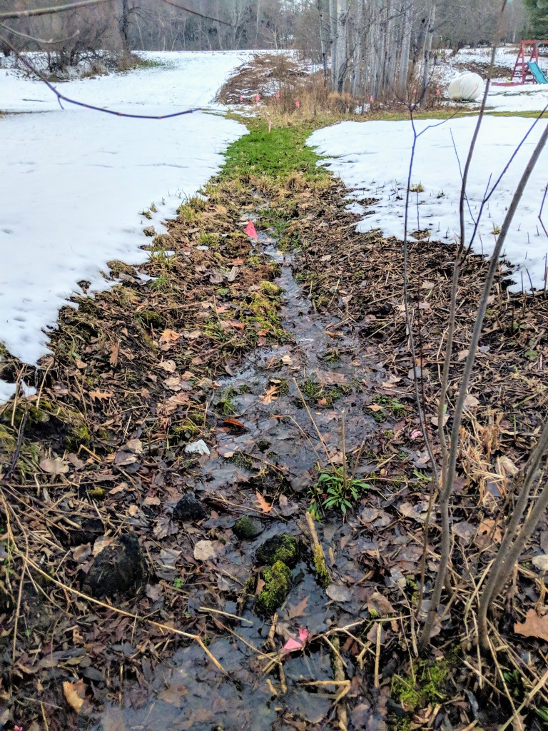Water flowing from across 34 Greensboro into the “not a wetland” next to Greensboro Rd.